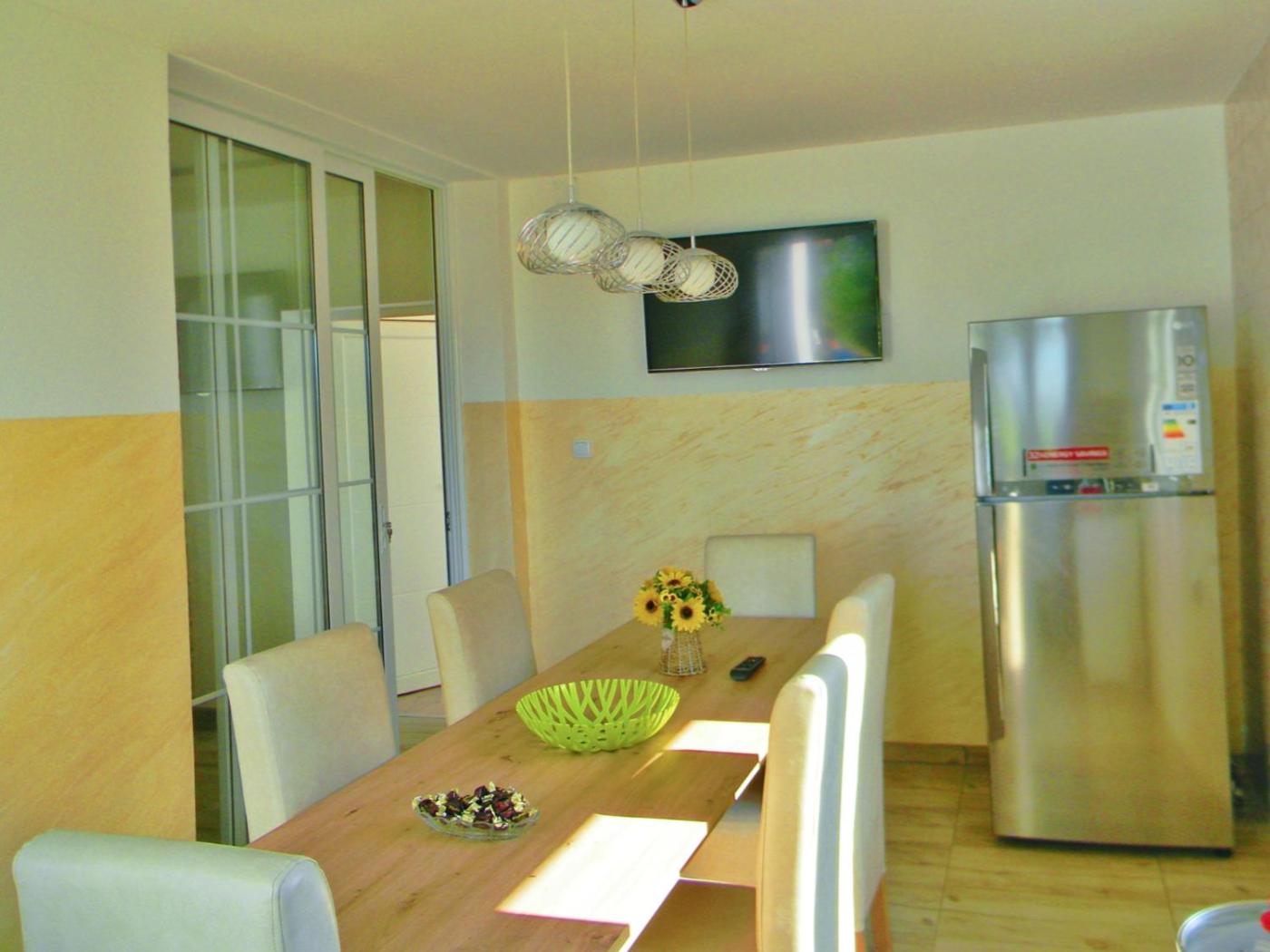Three-Bedroom Villa. Boasting a private entrance, this air-conditioned villa includes a kitchen, 3 bedrooms and 1 bathroom with a shower and a bidet. Guests will find a refrigerator, kitchenware, an oven and a tea and coffee maker in the kitchen. The villa also features a barbecue. Featuring a terrace with garden views, this villa also offers a washing machine and a flat-screen TV with cable channels. The unit has 5 beds.