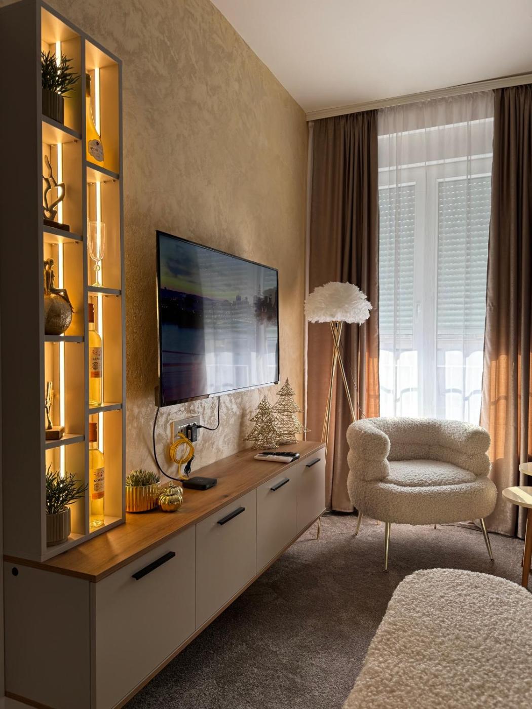 One-Bedroom Apartment. The apartments kitchenette is available for cooking and storing food. The apartment is fitted with a flat-screen TV, air conditioning, a minibar, as well as heating. The unit has 1 bed.