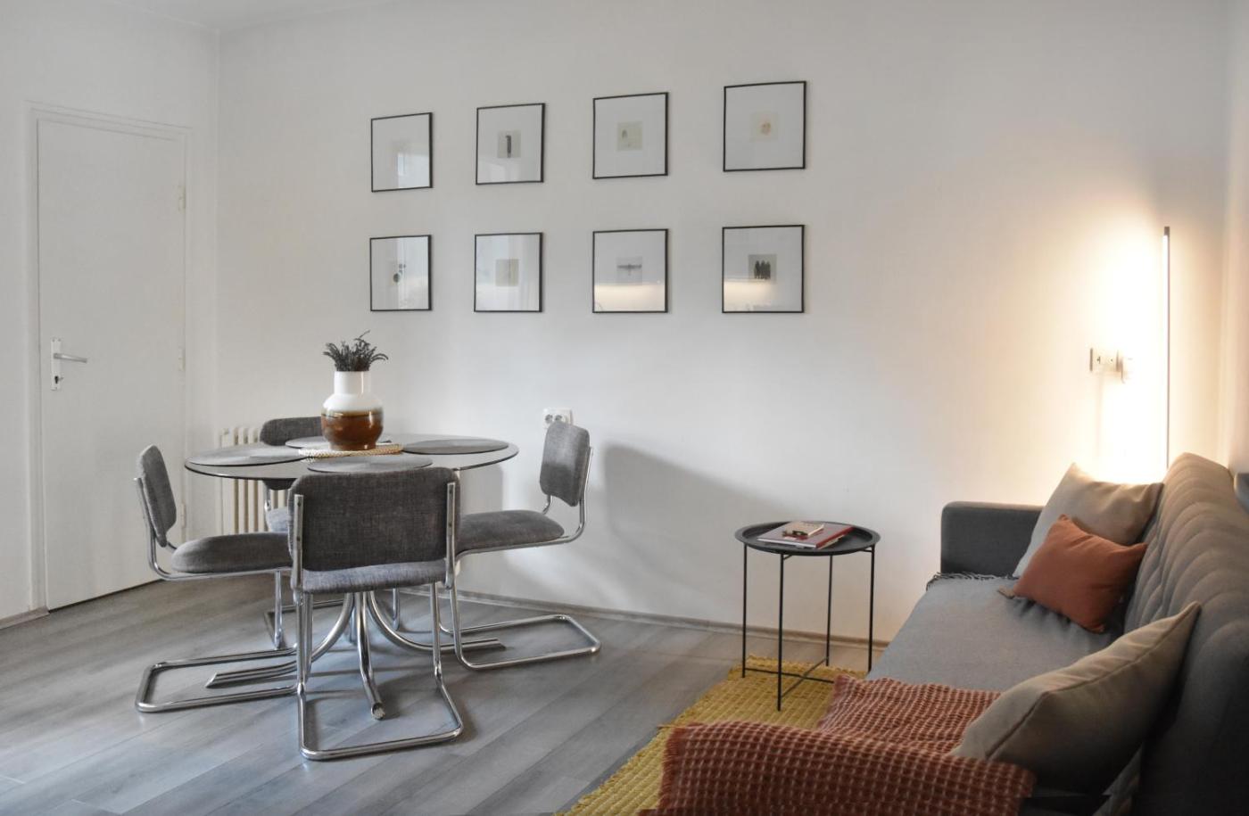 One-Bedroom Apartment. Boasting a private entrance, this air-conditioned apartment comes with 1 living room, 1 separate bedroom and 1 bathroom with a walk-in shower and a hairdryer. The well-fitted kitchen features a stovetop, a refrigerator, kitchenware and a toaster. This apartment has a washing machine, a seating area, a flat-screen TV with cable channels and a terrace. The unit has 2 beds.
